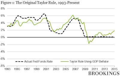 as evidence that the Federal reserve has kept interest rate too low since the financial crisis and that policy leading up to the financial crisis was too weak. To many this argument is compelling; as inflation is currently near target and output isn't too far from potential, the Federal Funds Rate should be higher, shouldn't it?