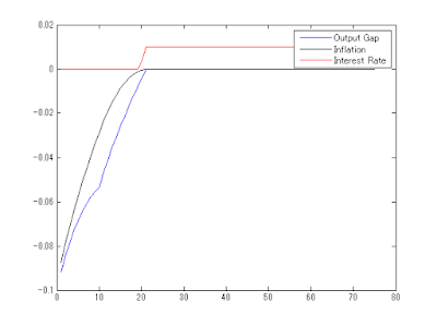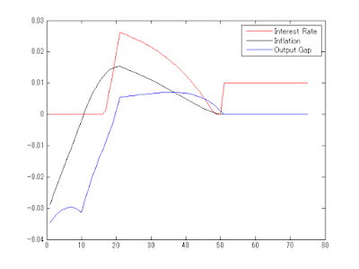 Of course Scott is now screaming at me for committing the same sin as Krugman by fixing the future price level. Don't worry, I'll get to a more complex model, I just wanted to show that Sumner's result doesn't make sense in this pseudo-dynamic context (that, I might add, is already much better than his lazy static model. The same goes for Krugman's 1998 model, which was also dynamic).