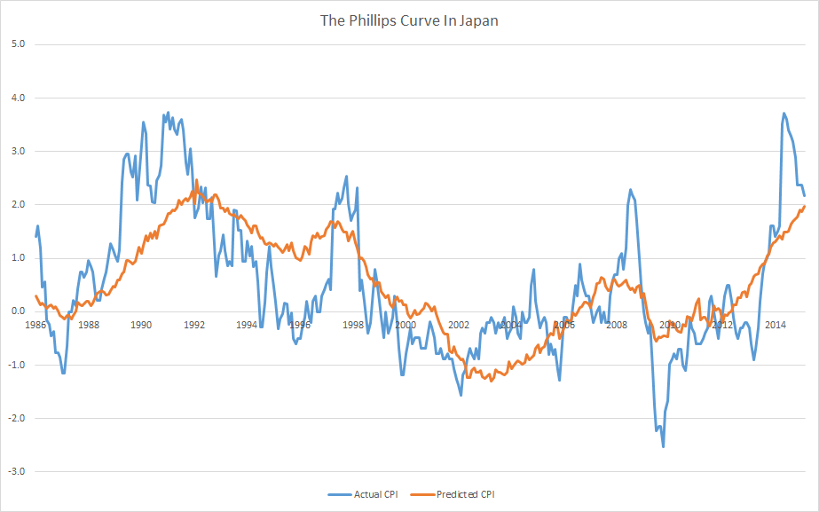 Au contraire! You see, Noah and other Phillips Curve doubters, Japan actually has an exceptionally good Phillips Curve, so unfortunately Noah Smith's eyeballing led him astray: